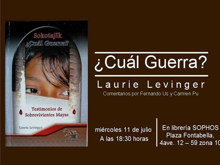 The experiences of Maya individuals, families and communities during the internal armed conflict have been repeated countless times in countries around the globe.The words and emotions shared in Laurie Levinger’s 2009 book, What War? Testimonies of Maya Survivors (Cual Guerra? Testimonios de sobrevivientes Mayas) could have been given by armed conflict survivors anywhere, anytime, in any war or conflict region.